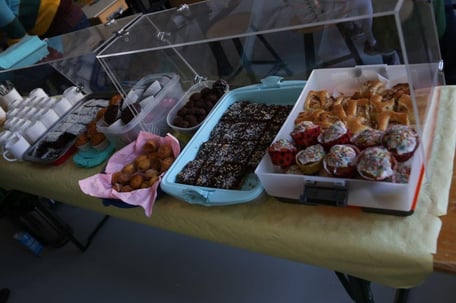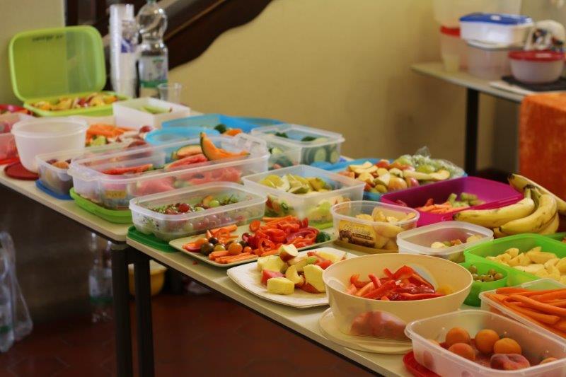 Die Eltern unterstützen den Tag in der Vorbereitung und in der Betreuung der Stationen. Auch sorgen sie für eine gesunde Verpflegung zwischendurch - ein reichhaltiges Obst- und Gemüsebuffet und Wasser zum Trinken.