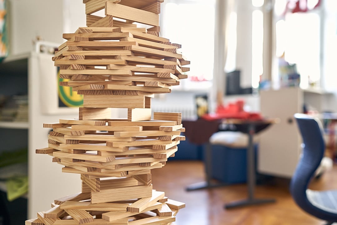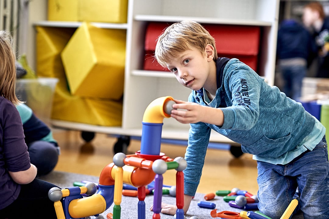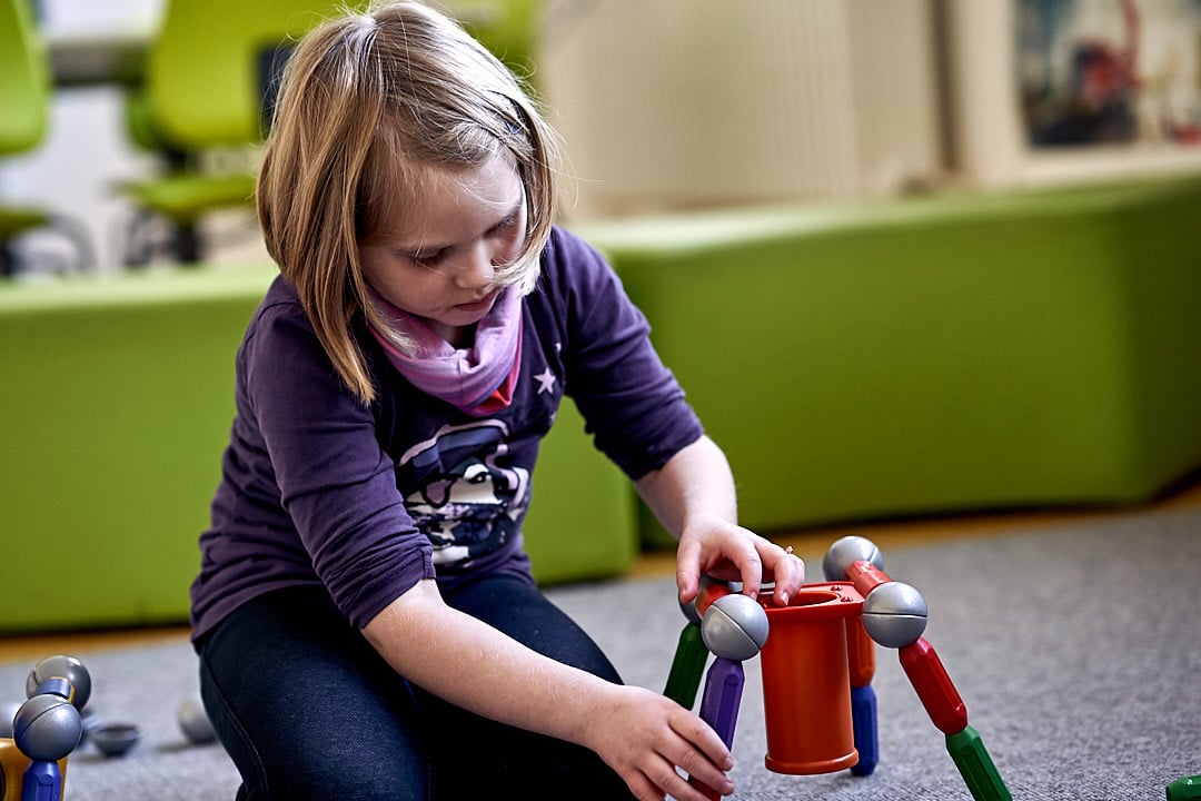 In diesem Raum können die Kinder nach Lust und Laune mit Klötzen, Lego und anderen verschiedensten Materialien bauen und konstruieren.