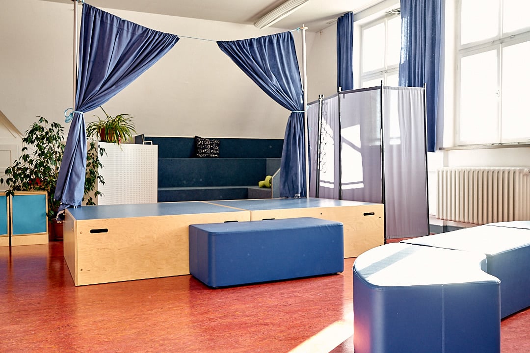 Wenn die Kinder das Bedürfnis haben, sich zurückziehen, können sie dies im Ruheraum tun. Dies ist im Mittagsband möglich.