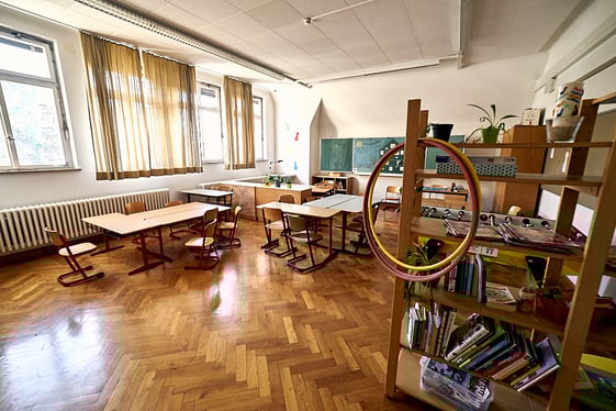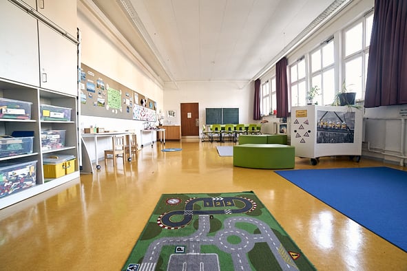 Hier findet ein Großteil des Schulalltags statt. Dazu gehören neben dem klassischen Schulunterricht auch die Inselstunde, das Sprachband und der Klassenrat.